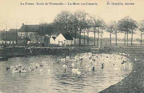 Deze kaart is verstuurd tussen 1910 - 1920. Hier bouwde Jules Lacroix een grote woning, dat hij uitbaatte als hotel om de leerlingen van de landbouwschool een onderkomen te kunnen geven. Het droeg de naam "Hotel de la Campine". |