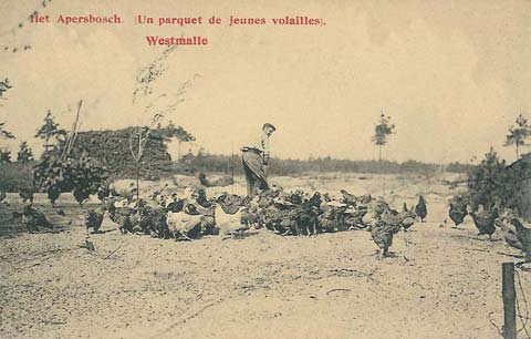 Hier woonde André Baillon van 1-7-1907 tot 8-1-1910 , waar hij een kippenkwekerij uitbaatte. Achteraan zien we deheer Baillon staan en vooraan zijn hond Spits. |